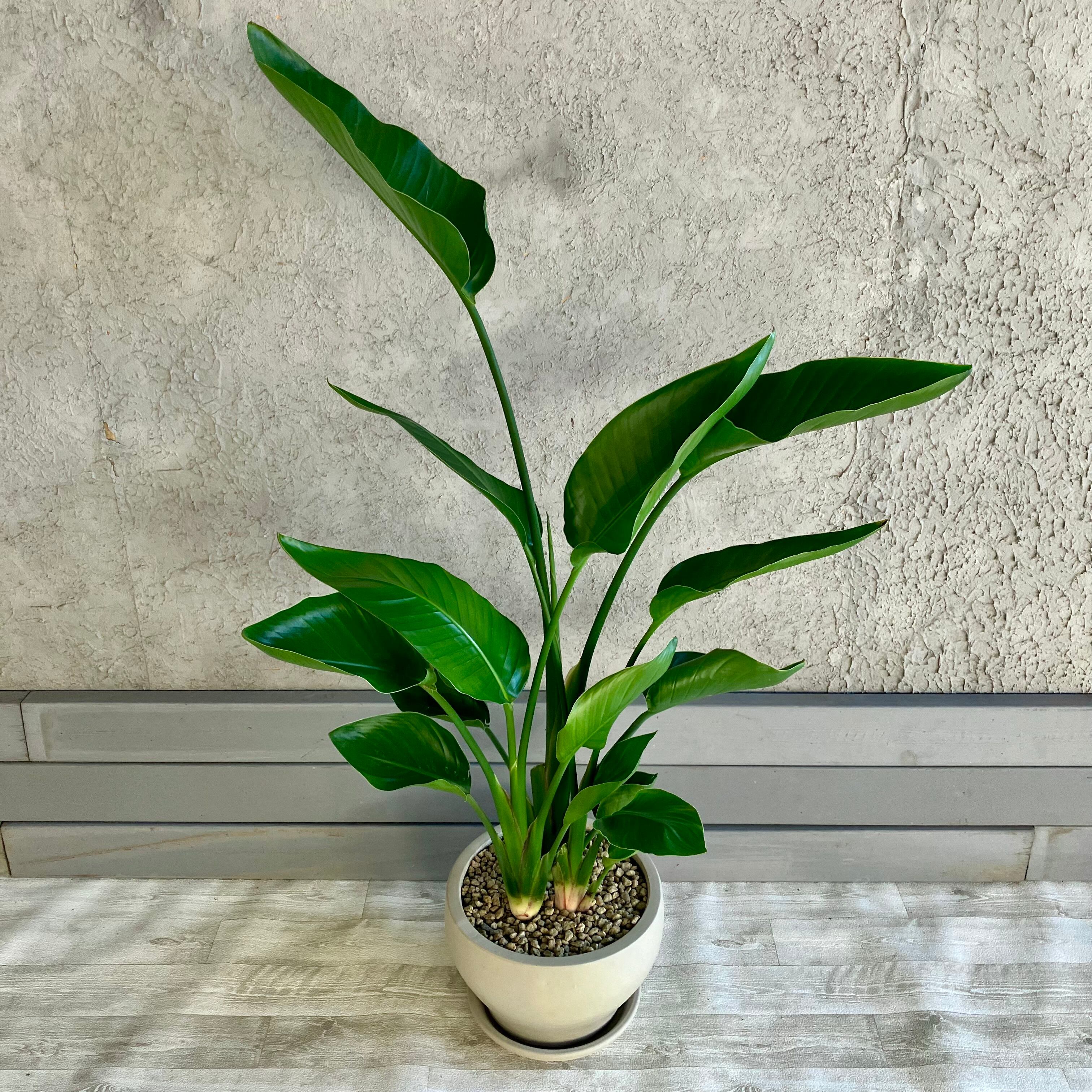美形 ストレリチア オーガスタ 8号 テラコッタ鉢植え ストーンベージュ 受け皿付き